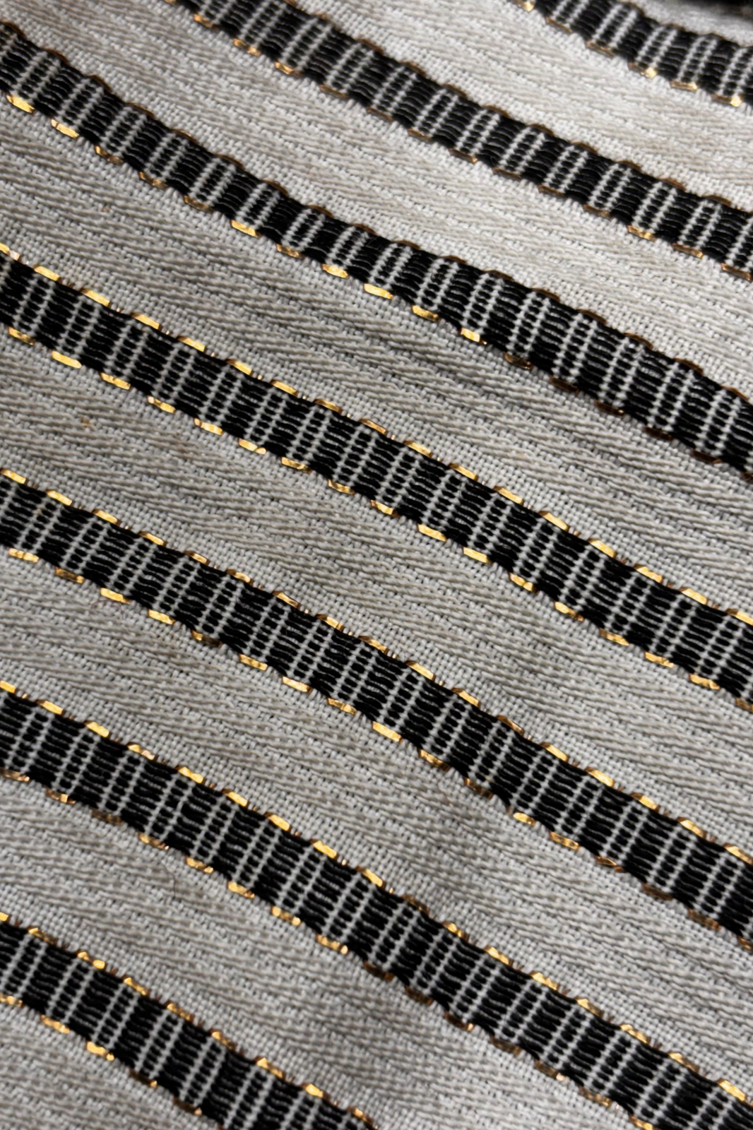 - Heavyweight striped wool body (Crème/Black) Gold thread detailing